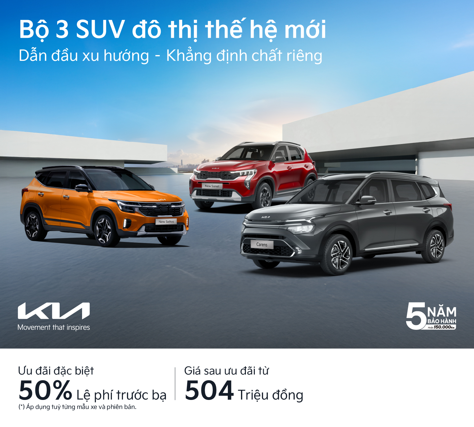 SUV đô thị Kia Sonet, Kia Seltos và Kia Carens là sự kết hợp hoàn hảo giữa phong cách hiện đại, trải nghiệm công nghệ thông minh, đa dạng phiên bản, tùy chọn màu sắc ngoại thất với giá bán dễ tiếp cận đã chinh phục đông đảo khách hàng trẻ tại Việt Nam.